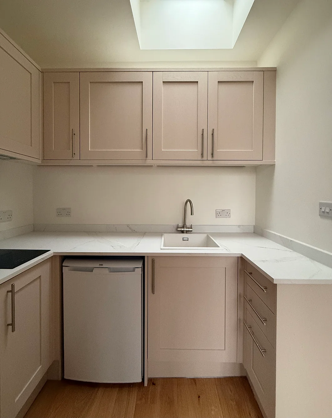Here we renovated the entire apartment, changing everything from the floors to a new fire resistant ceilings, fully insulating the walls & floors. For the floor we added new sound proof floor boards and underlay, before laying the floor. Along with a complete re-wire we also ran new pipes for the whole property. Replaced all doors, frames and architraves. A complete refurb of the bathroom and Kitchen was also carried out with walls moved best utalise the space within both areas.